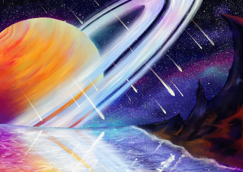 For the illustration of Saturn, it took me around a month to complete, as I was balancing my Crew work with creating the image. For the Black Hole one, I was able to work remotely while the team covered me, so that one actually only took aro