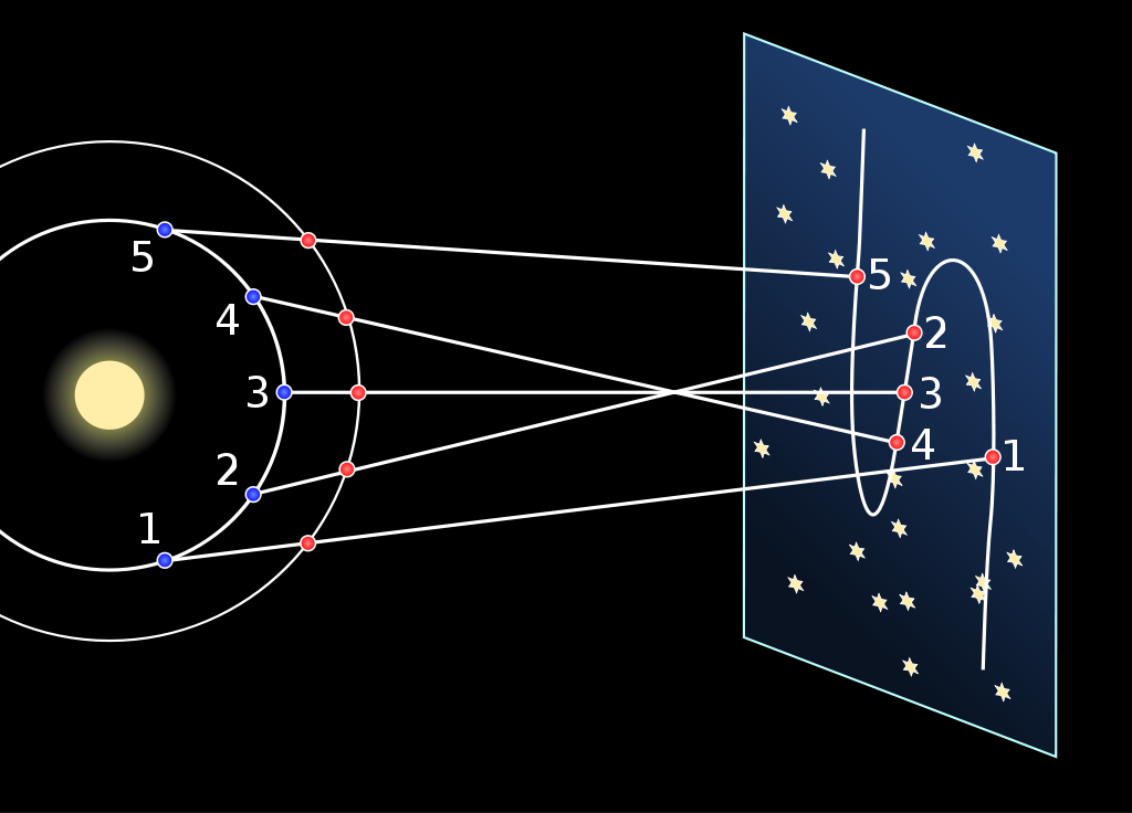 (6) Retrograde Motion. Credit: Brian Brondel CC BY-SA 4.0 (https://en.wikipedia.org/wiki/Apparent_retrograde_motion#/media/File:Retrograde_Motion.bjb.svg)