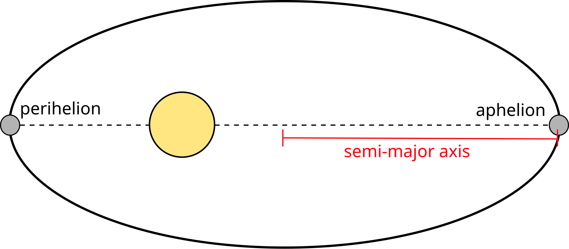 (1) The perihelion, aphelion and semi-major axis of elliptical orbit around the Sun. Credit: public domain