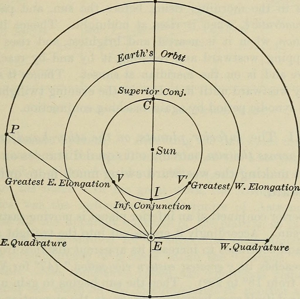 (5) Diagram showing planets at the points of greatest elongation. Credit: public domain