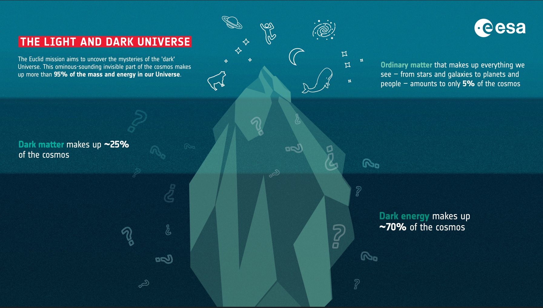 The normal matter in the universe accounts for just under 5% of the universal composition, whilst dark matter accounts for 27% and dark energy 68% - that’s a pretty ‘dark’ universe!