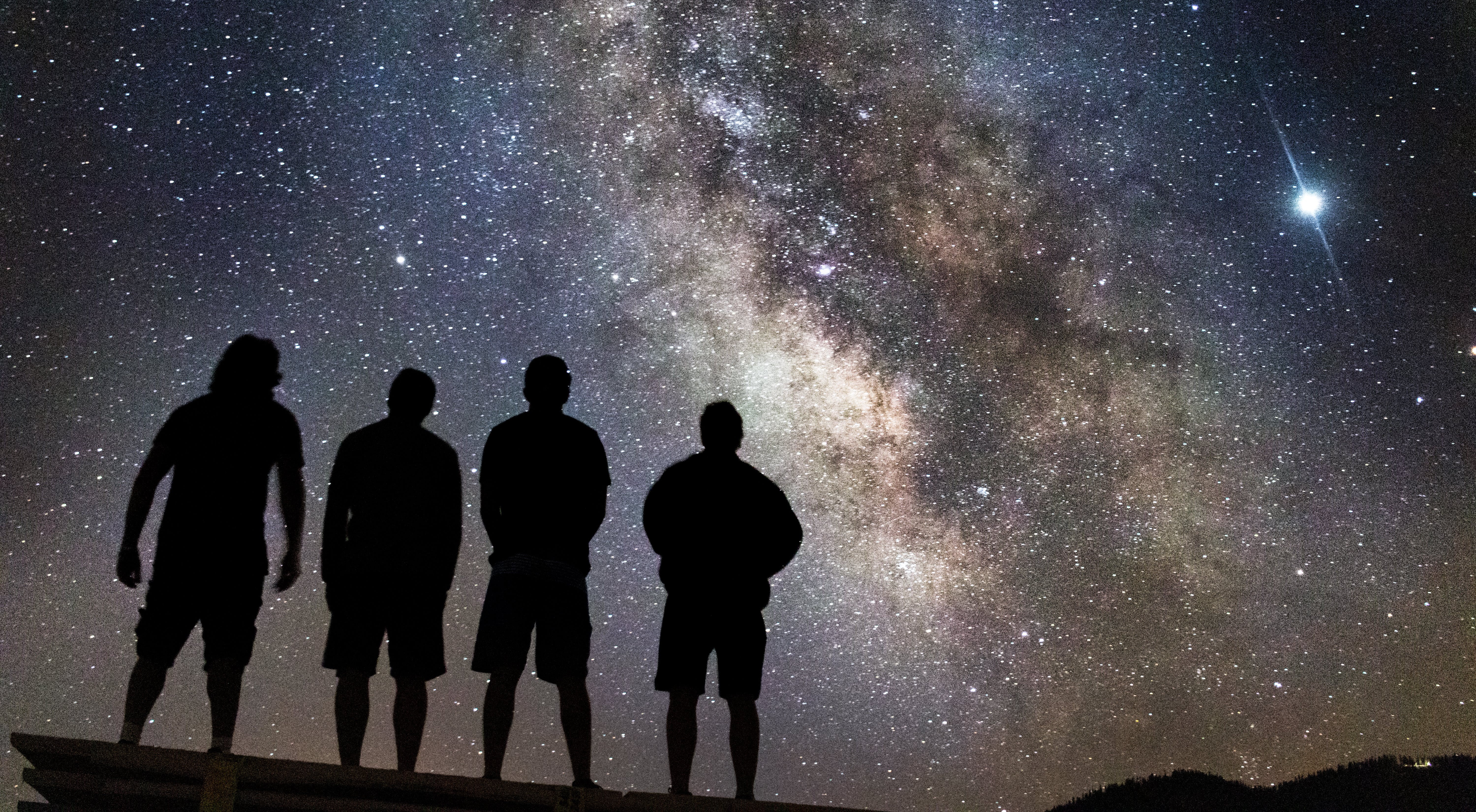 (2b) Group of people stargazing. Credit: Kendall Hoopes (public domain) https://www.pexels.com/photo/silhouette-of-people-stargazing-2901134/