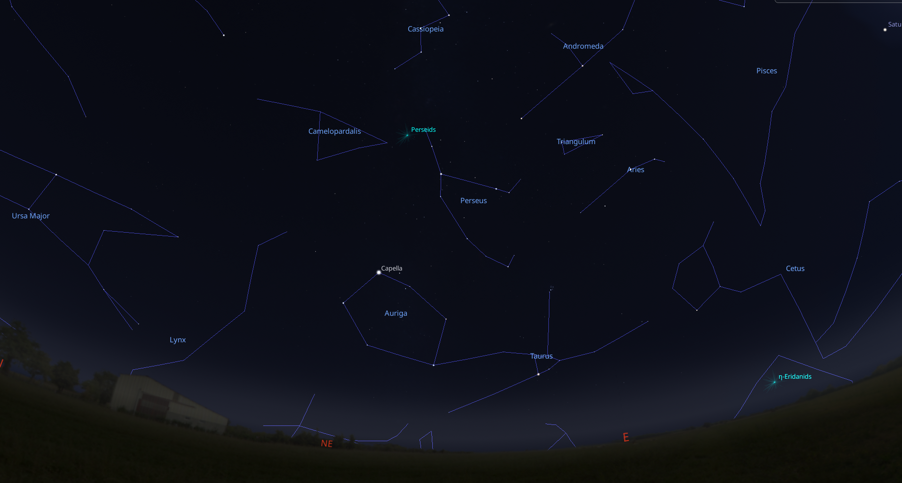 (2a) Radiant of Perseid meteor shower. Credit: Stellarium