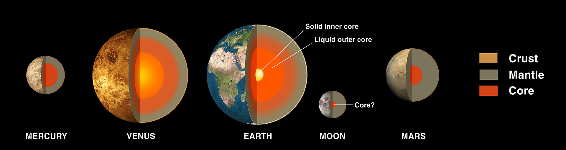 (2) The structure of the terrestrial planets and the Moon, NASA, Public Domain