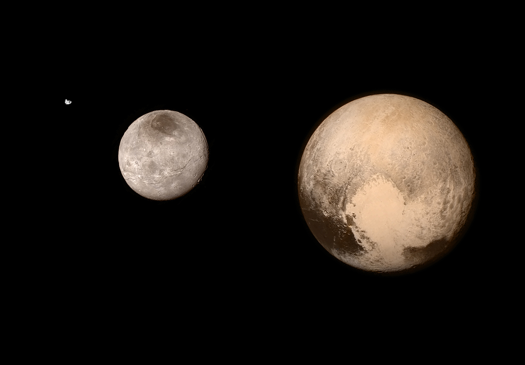 (6) Pluto and 2 of its moons Charon and Hydra, Camille Gévaudan, Public Domain