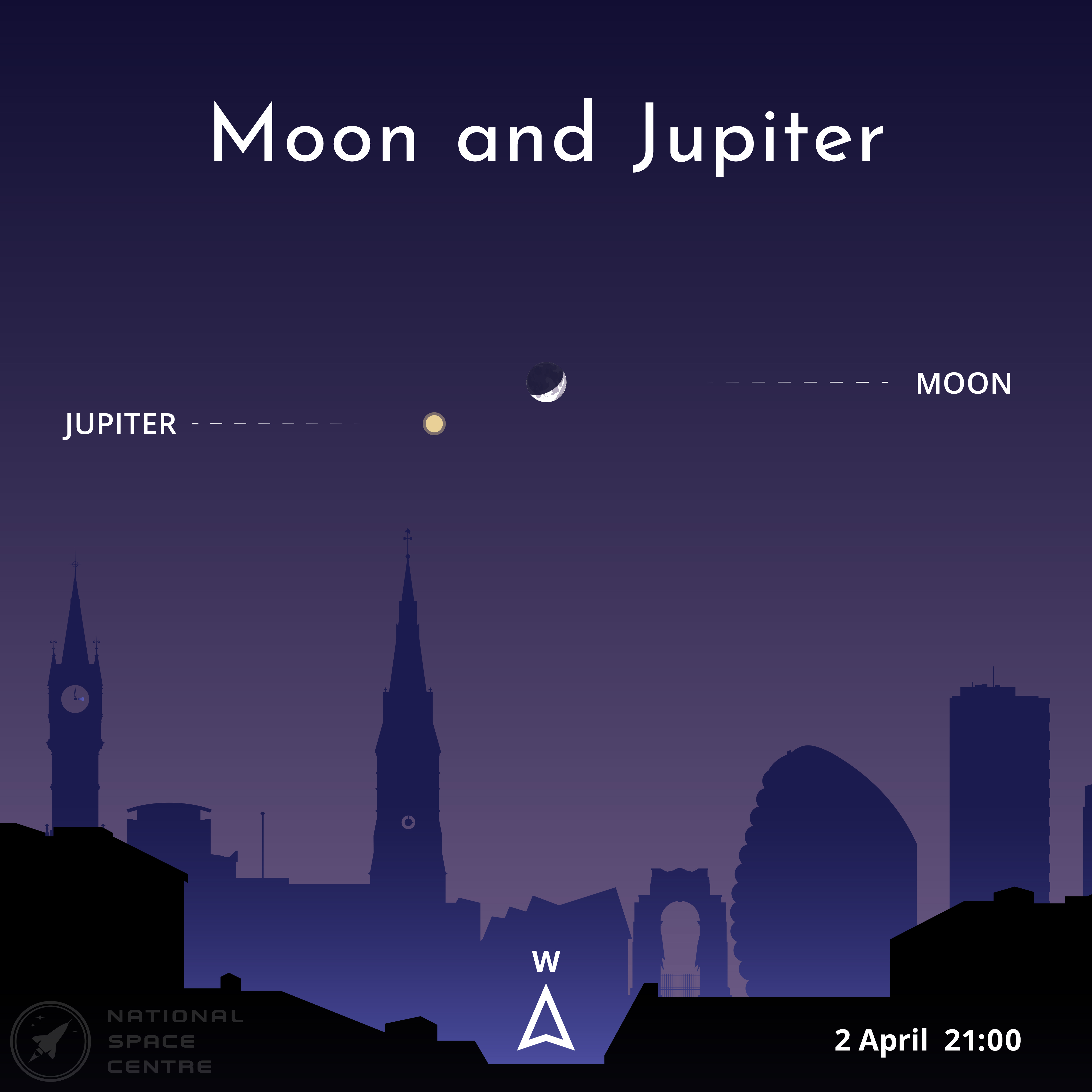 (1) Moon and Jupiter on 2 April. Credit: © National Space Centre