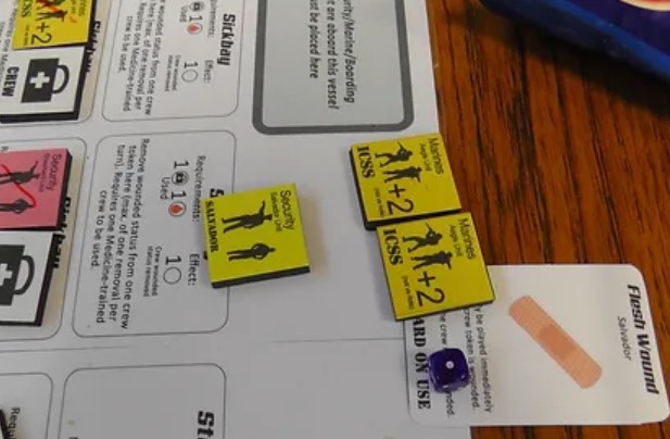 But here's the rub – over the seven-hour play time, you will have to keep a close eye on the other players because some are spies for the Wolf Forces and intend on sabotaging the fleet! Because there are so many players you will need multiple tables and that’s worked into the gameplay! Each table is its own starship with the players around it being its crew. So not only do you have to work together with your own shipmates but with other ships as well. All while keeping an eye out for spies!
